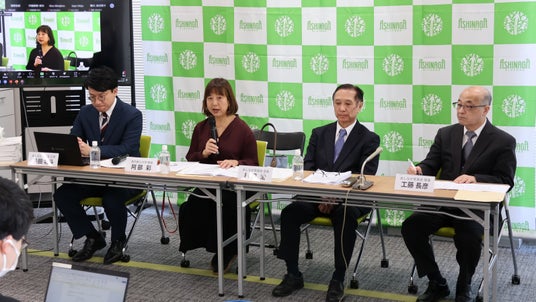 12月1日にあしなが育英会本部(東京都千代田区)で開いた、調査会見。調査に協力した東京都立大の阿部彩教授(左から2番目)も出席した。