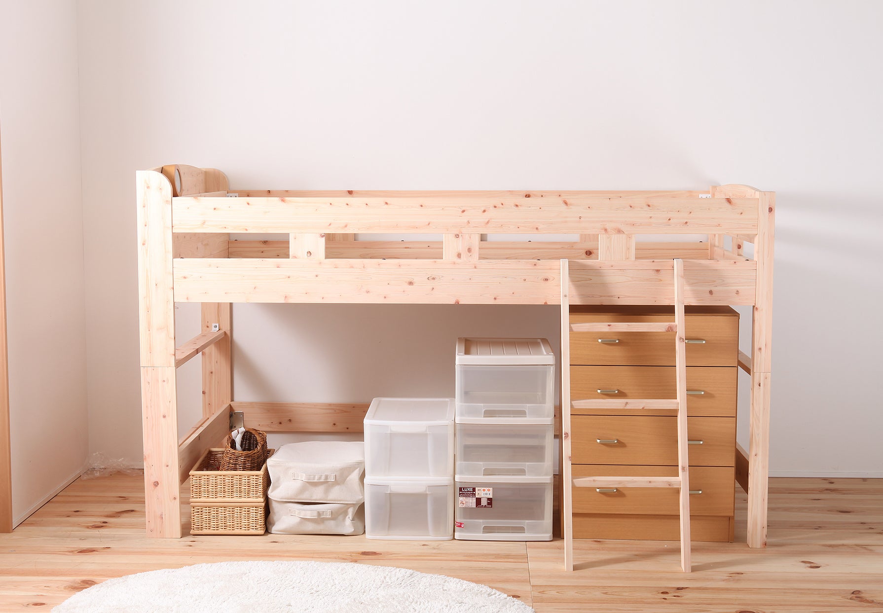 ロフトタイプ - 空間を“増やす”ひのきベッドワンルームや子ども部屋にぴったりの、「縦の空間」を活かせる賢いロフト仕様。「部屋を広く使いたい」「省スペースでも上質な寝心地を」という方に最適です。