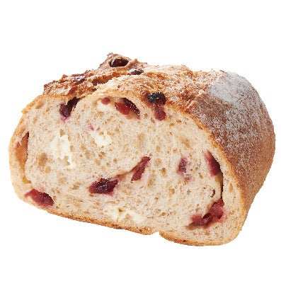 全粒粉入りの香ばしい生地に、ドライクランベリーとホワイトチョコをたっぷり巻き込み、しっとりと焼き上げました。クランベリーのやさしい酸味とホワイトチョコの甘みが口いっぱいに広がります。見た目にも華やかな赤と白でクリスマスにぴったりな商品です。
