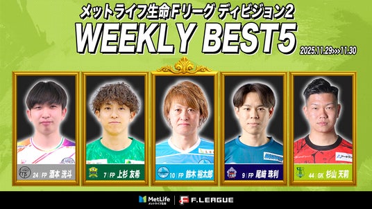 11月29日(土)~11月30日(日)に実施したメットライフ生命Fリーグ2025-26 ディビジョン2 第17節におけるベスト5をお知らせいたします。