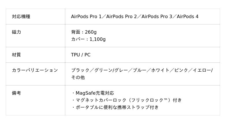 - AirPods Pro 3専用(Amazon、ESR公式サイト)