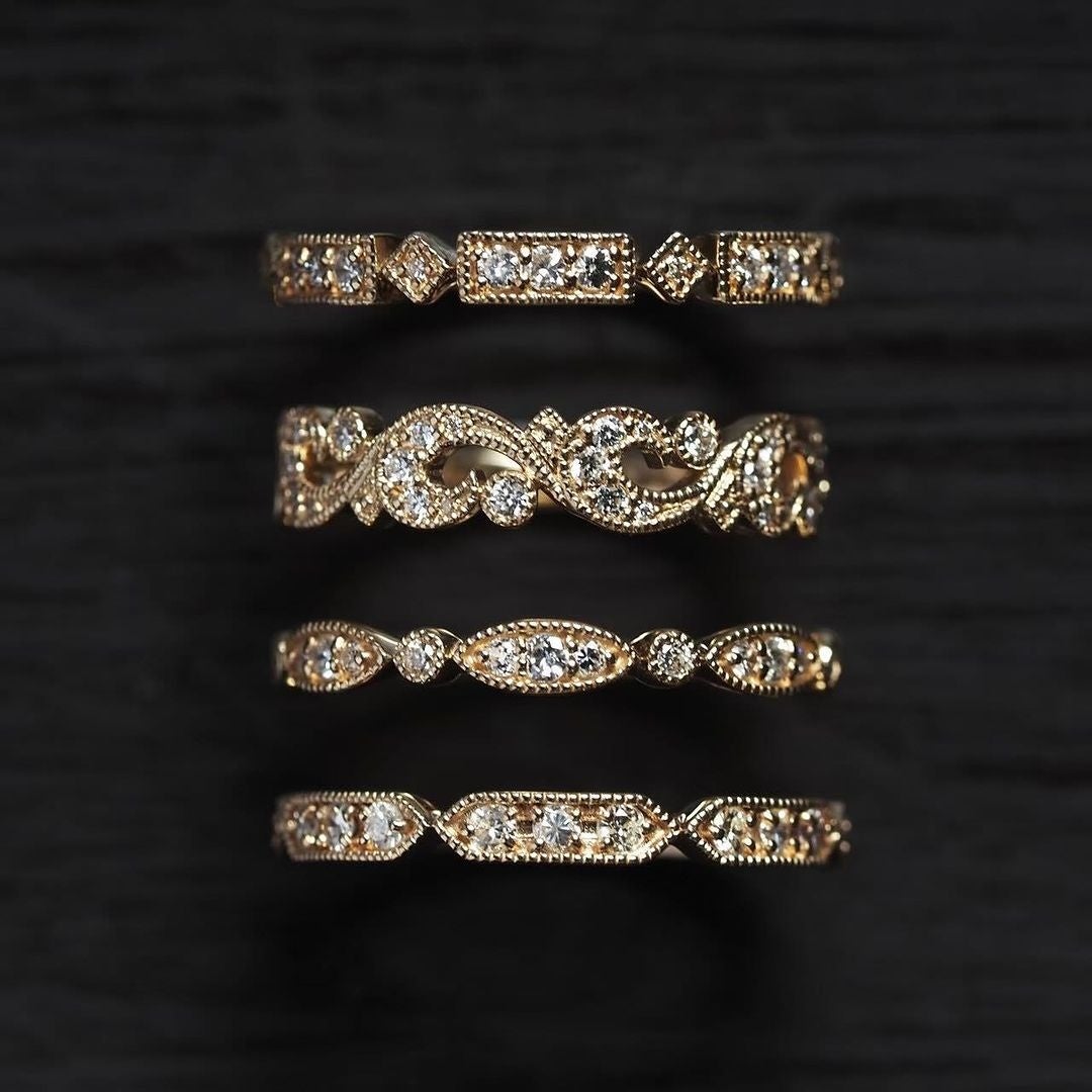 柔らかな光をまとったK9素材に、丁寧なミル打ちを合わせた「Mille Gothique(ミルゴシック)」シリーズ。どこか懐かしさを感じる佇まいで、アンティークジュエリーを思わせる雰囲気が特徴です。縁に並ぶミルは、職人が一点ずつ打ち込んだものです。道具の入り具合や力の加減によって微妙な差異が生まれ、同じデザインでも仕上がりの表情が異なります。