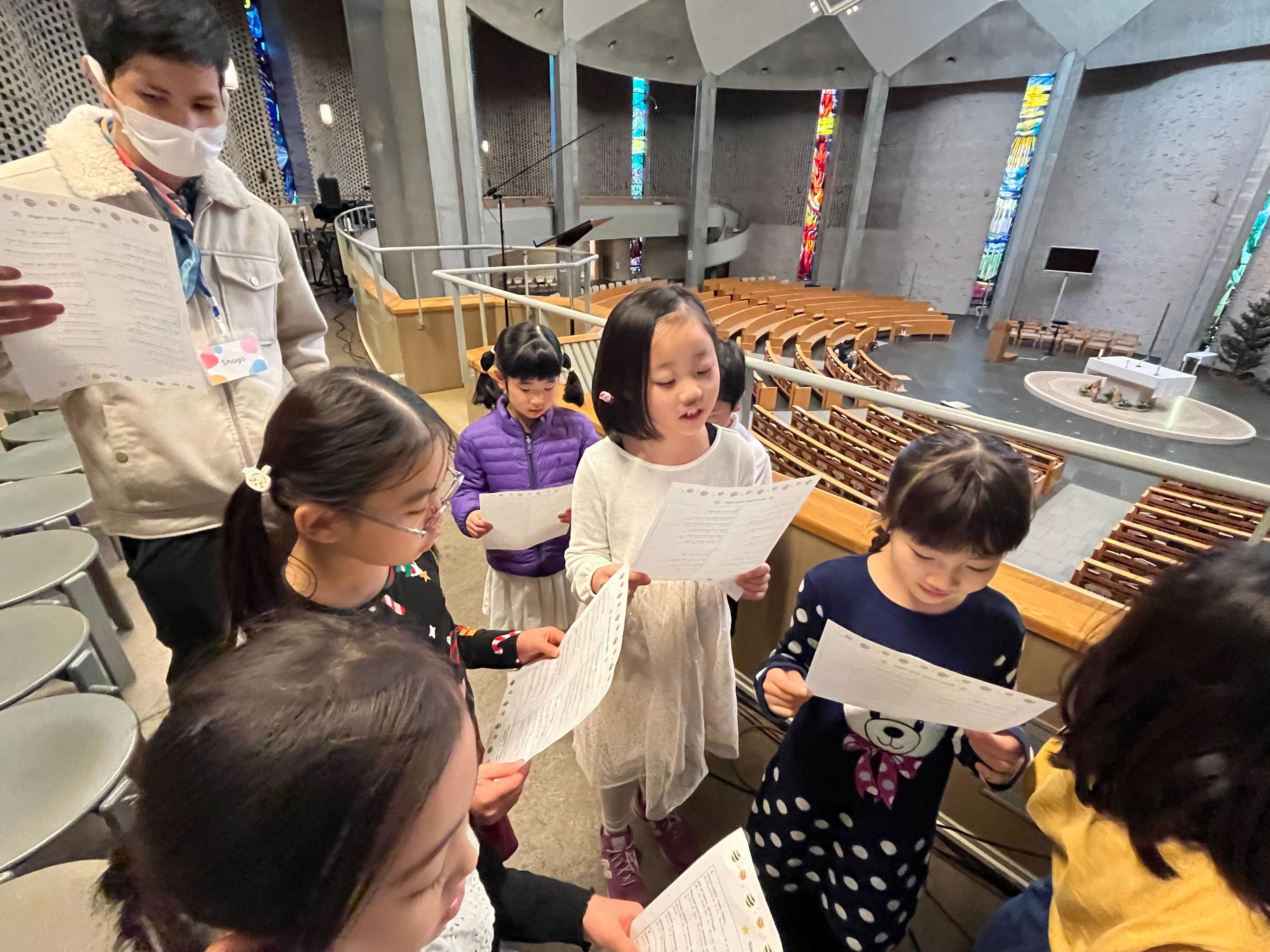 大きな大聖堂で聖歌『Silent Night』を英語で歌います。上智大の聖歌隊の方と一緒に歌ったり、大きなパイプオルガンをオルガニストの方と弾きます!