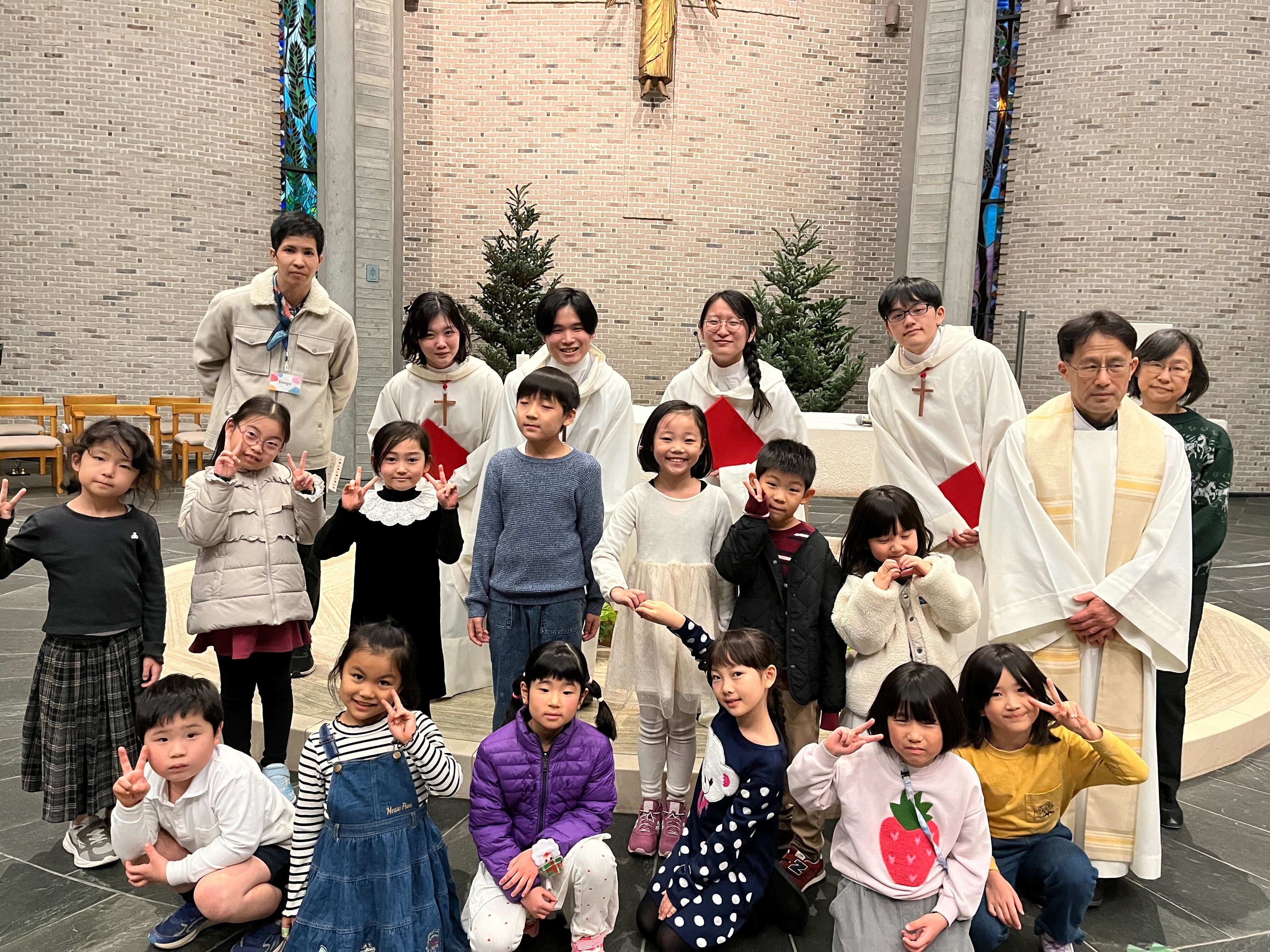 神父様からお話を聞きクリスマスの歴史や世界を学びます。