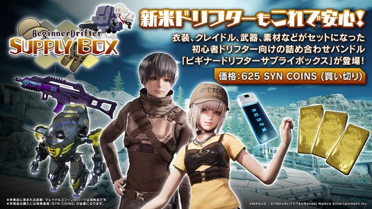 ゲーム序盤を有利に進めることが出来る衣装、クレイドル、武器、素材などがセットになった初心者ドリフター向けの詰め合わせバンドルが発売中!