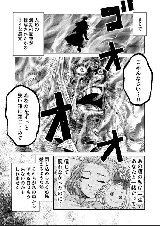 幼い頃から繰り返し見る――暗い箱に閉じ込められる夢。ただのトラウマだと思っていた会社員の「私」は、ある夜、耳元で聞こえた囁きに導かれるように押し入れを開ける。そこから出てきたのは、忘れていたはずの布の人形。その瞬間、封じていた記憶が少しずつ鮮明になりはじめる。