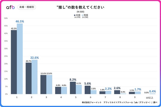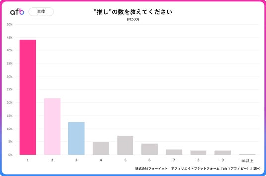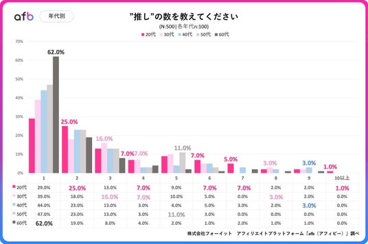 アフィリエイトプラットフォーム「afb(アフィビー)」< https://www.afi-b.com/ >の開発運用をおこなう株式会社フォーイットは、全国の20代~60代までの男女500人を対象に推し活に関するアンケートを実施し、年代別等の特徴についてまとめました。