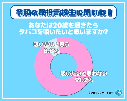 今回の調査で「吸いたいと思う」と回答したのがわずか8.8%という結果に。91.2%の現役高校生が「吸いたいと思わない」ことがわかりました。