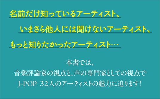 本書は、藤井風、Ado、YOASOBI、米津玄師など、いま世界に進出しているアーティストたち。または、MrsGREENAPPLE、official髭男dism、B’z、氷川きよし、郷ひろみなど、時代や世代を超えた日本を代表する32人のJ-POPのアーティストたちを歌声の秘密、ことばの使い方、楽曲のこだわりなど、音楽評論家としての視点と、声の専門家としての視点で徹底解剖した一冊です。