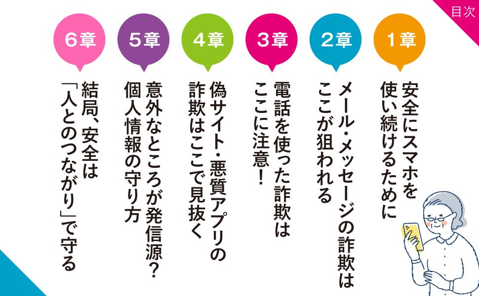 セキュリティの専門家が、「オールカラー」「やさしい表記+用語集」で注意点や操作方法を解説。スマホをもっと安心して使うために、“だまされない力”を身につけましょう。
