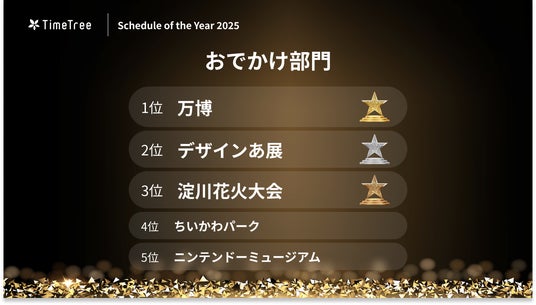 それ以外の予定では、Nintendo Switch 2の発売も話題になった任天堂に関連して、「ニンテンドーミュージアム」がランクインした他、7月28日にオープンしたばかりの「ちいかわパーク」、初の秋開催となった「淀川花火大会」、4月から半年に渡って開催された「デザインあ展」がランクイン。世界の文化や食、キャラクター・ゲーム・テレビ番組の世界観など、「非日常」が楽しめる予定が並ぶ結果となりました。