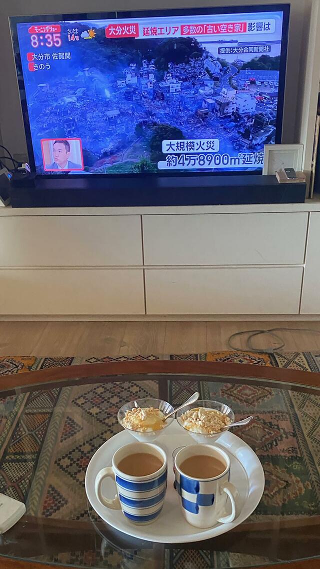 大分で大規模火災発生。1.5km離れた島が発火元だという。被害に遭われた方々、大変だなあ。唖然と画面を見つめながらいつも朝食。お見舞い申し上げます。
