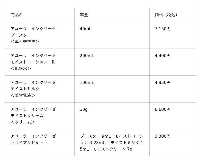 アユーラは、新しいスキンケア「インクリーゼ」シリーズ【全4品4,400円~7,150円(税込)】を、2026年2月20日(金)より新発売いたします。また、シリーズを手軽にお試しいただけるトライアルセット【4品セット3,300円(税込)】も同日発売いたします。