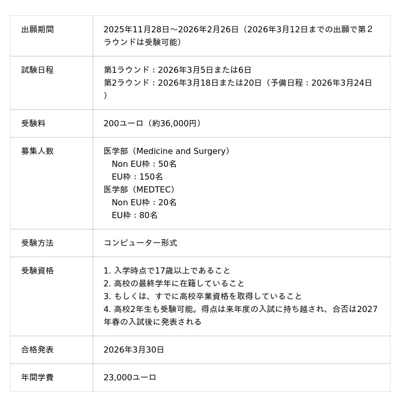 イタリアの英語医学部進学を専門とする「イタリア医学部予備校」(運営:MED ITALY株式会社/本社:東京都港区、代表取締役:近藤晋一郎)は、ミラノにキャンパスを構える私立大学「ヒュマニタス大学(Humanitas University)」の2026年秋入学の出願受付が開始されたことをお知らせいたします。