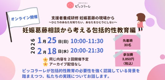 認定NPO法人ピッコラーレ(所在地:東京都豊島区、代表:中島かおり、以下ピッコラーレ)は、以下の日程で支援者養成研修<妊娠葛藤相談から考える包括的性教育編> 妊娠葛藤の現場から~ひとりのあなたを知りたい、あなたをひとりにしない~を開催します。