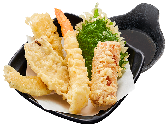 『季節の天ぷら盛り合わせ』490円(税込)~海と畑の恵みを揚げたてで!寒ぶり・