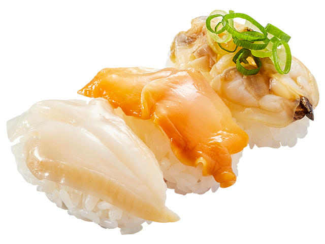 『3種の貝食べ比べ』三貫270円(税込)~三つの貝、三つの旨み、つぶ貝・赤貝・あさりを食べ比べ!