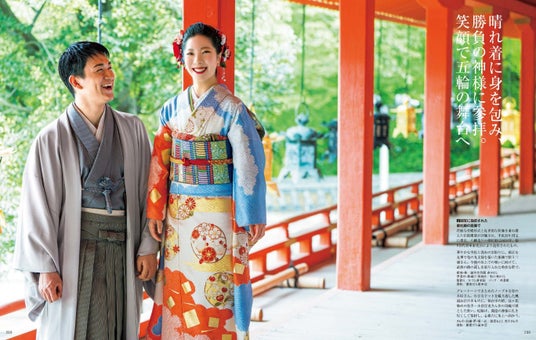 「私は成人式以来なので、本当に新鮮でした。色合いも素敵で、なにより私たち二人揃って着る機会は初めてですし、しかも神聖な場所にお詣りもできて嬉しいです。」―三浦璃来選手