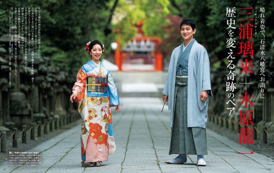晴れ着を着て石清水八幡宮へお詣りの密着取材。きものの感想をお伺いすると、三浦選手と木原選手は笑顔で次のように答えてくださいました。