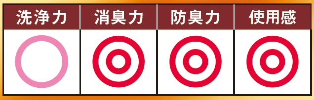 洗浄力、消臭力、防臭力、使用感の4つの項目をテスト