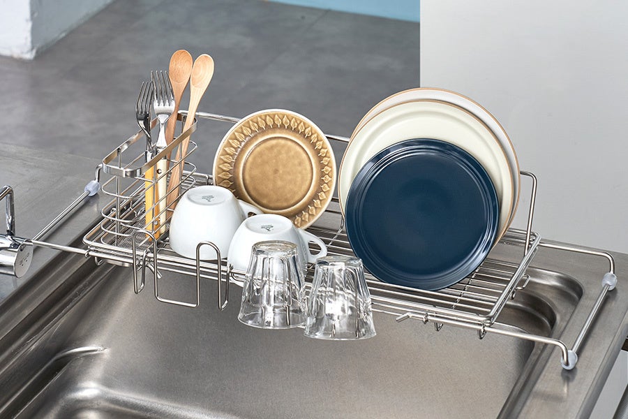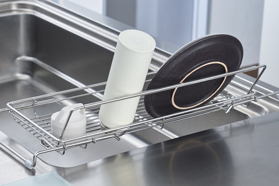 ディッシュラックは大きすぎたり、置くスペースがないと諦めている方におすすめしたいのが、こちらのスリムなディッシュラック。シンクの上に設置できるスリムタイプで、作業スペースを確保できる便利な設計。