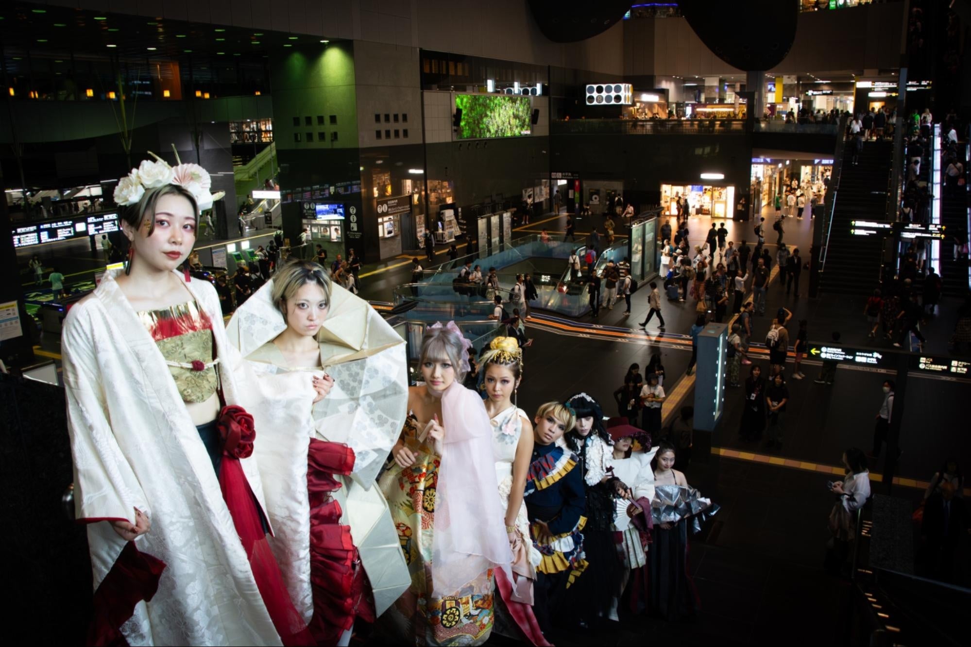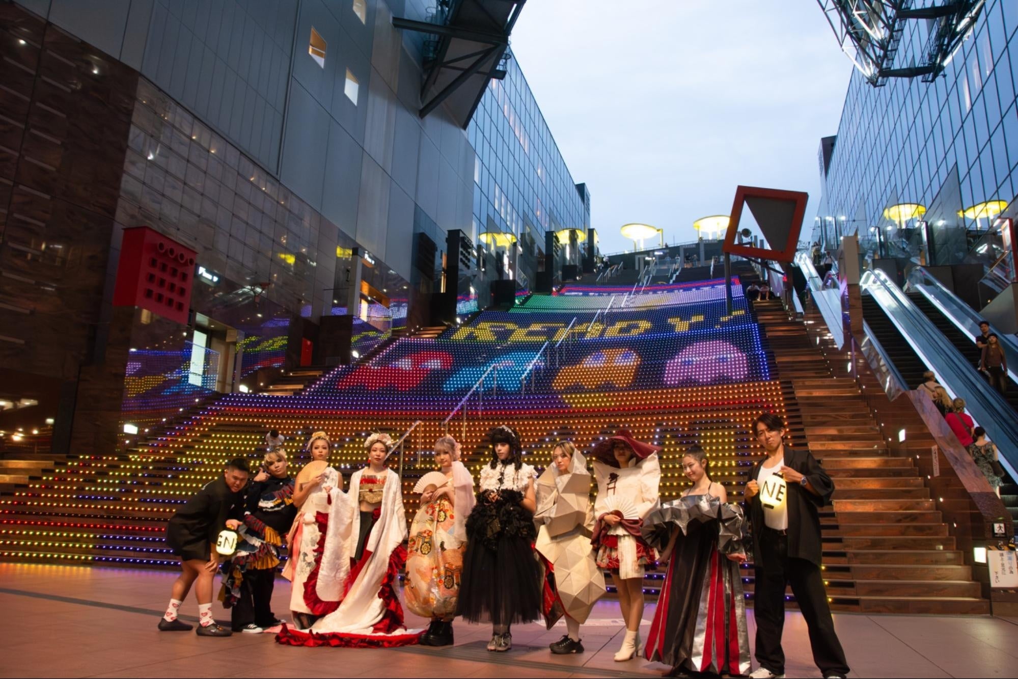 第1回京都駅ビル芸術祭(ゲイジュツ ノ エキ 2025/GNE)にてアップサイクル着物を纏ったギャルがアートスポットを練り歩く
