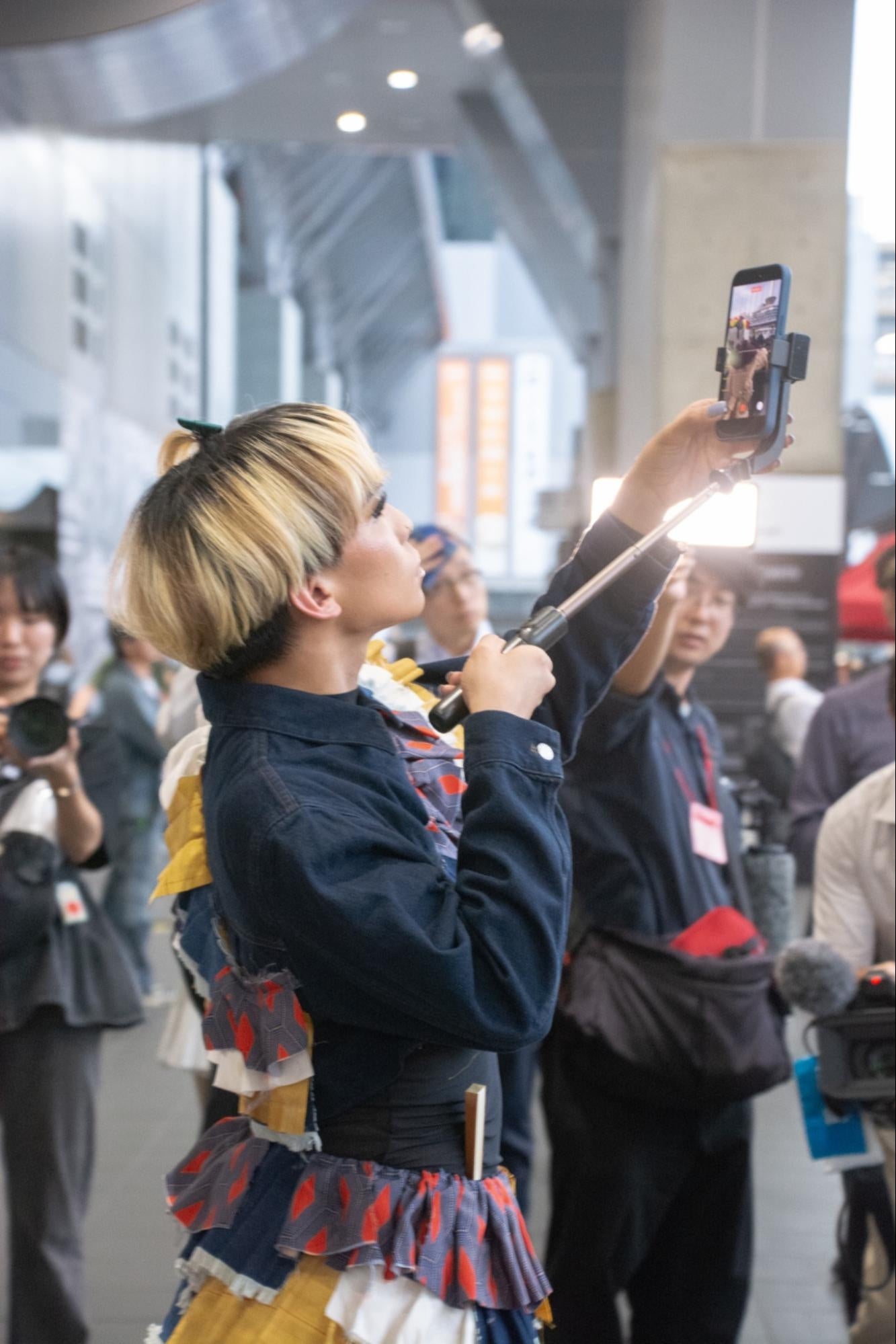 当日は、アップサイクル着物をまとったCGOギャルたちが京都駅構内を練り歩き、伝統文化とポップカルチャーの融合を体現。会場は華やかでポジティブなエネルギーに包まれ、若者や観光客の注目を集めました。伝統とアートが交差するGNEの各出展の中でも、ギャル×伝統着物のマッシュアップは大きなインパクトを与え、日本が生んだ着物文化、およびギャル文化に新たな価値が生まれました。