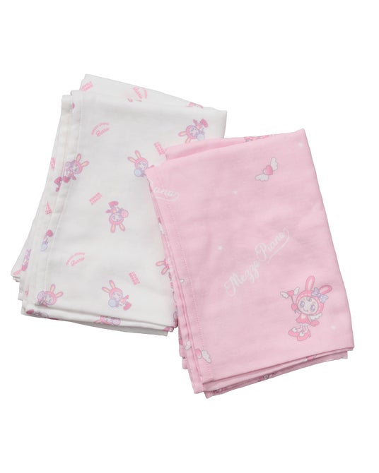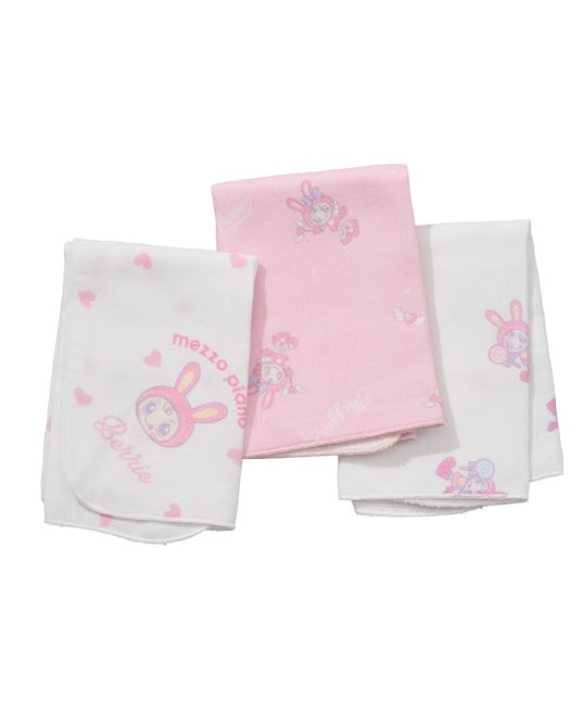 べリエちゃん柄ガーゼブランケットとアソート柄ガーゼハンカチセットは、オーガニックコットンを使用しやわらかく優しい肌触りが特徴。