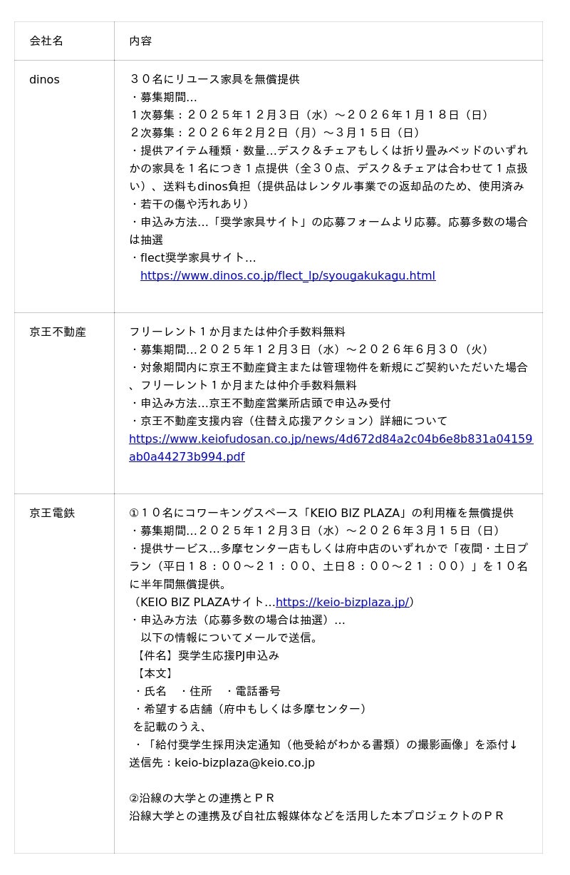 2.対象:京王線・井の頭線沿線に在住もしくは京王線・井の頭線沿線の学校に通い公的奨学金を受給する、すべての大学・大学院・短期大学・専門学校・高等専門学校の学生