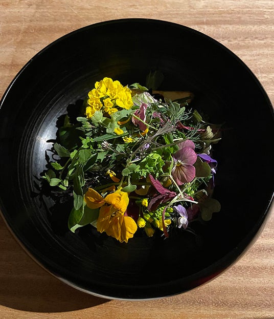 オーベルジュ「Villa della Pace(ヴィラ・デラ・パーチェ)」の、地野菜を集めたひと皿「畑」。