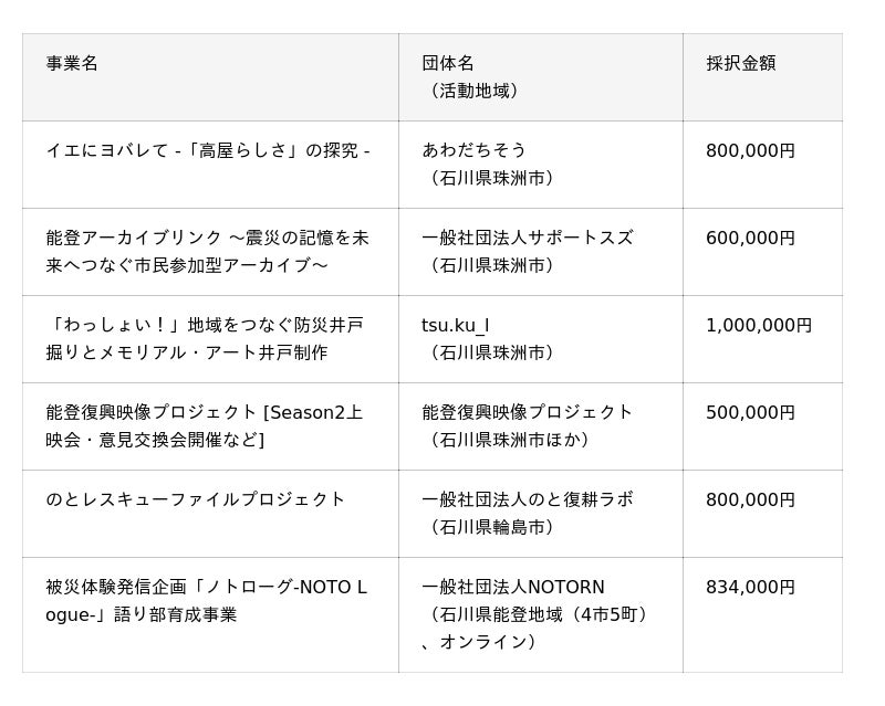 公益財団法人ほくりくみらい基金(所在地:石川県金沢市、代表理事:永井三岐子)は、2024年度「3.11 検索は、チカラになる」企画によるLINEヤフー株式会社様からのご寄付により「のこす・つたえる・つながる助成 supported by LINEヤフー」の公募を実施いたしました。