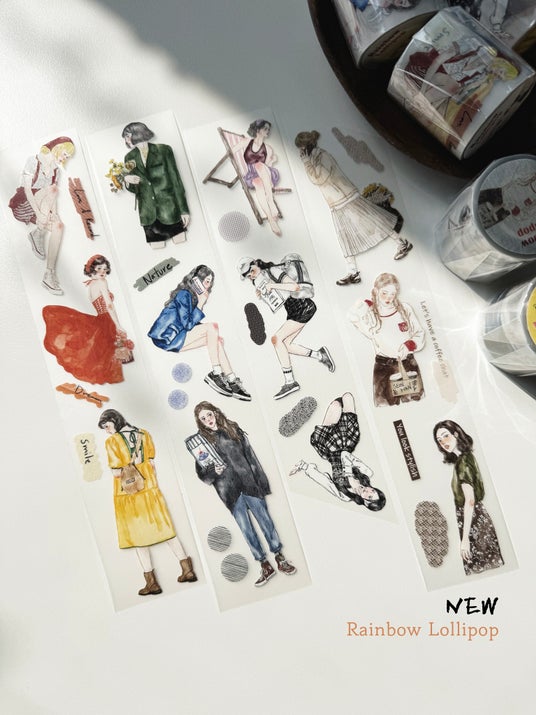 優雅な少女風のPETテープやステッカーを手掛け、繊細な筆致と柔らかい色使いで、温かみのある女性らしい世界観を表現しています。文具好きの間で高く支持されています。