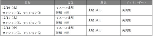 ※今回の合同テスト・ルーキーテストは公式放送と場内放送は同じ出演者となります。