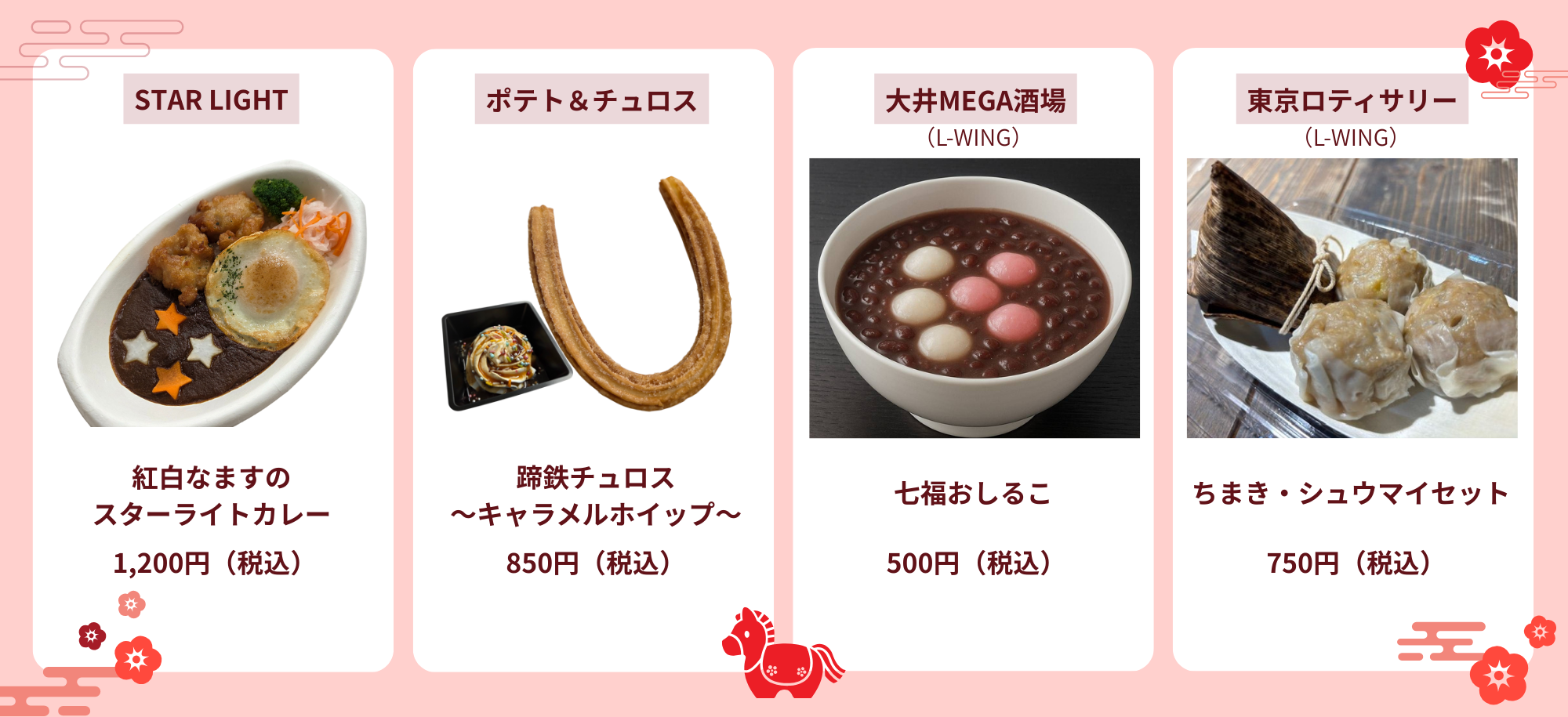 お正月限定の“うま~い”グルメをご用意。イルミネーションを楽しみながら、新春のひとときを彩るメニューをお楽しみください。