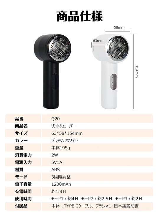 「Q20」は、プロの仕上がりを自宅で簡単に再現できるよう設計された毛玉クリーナーです。
