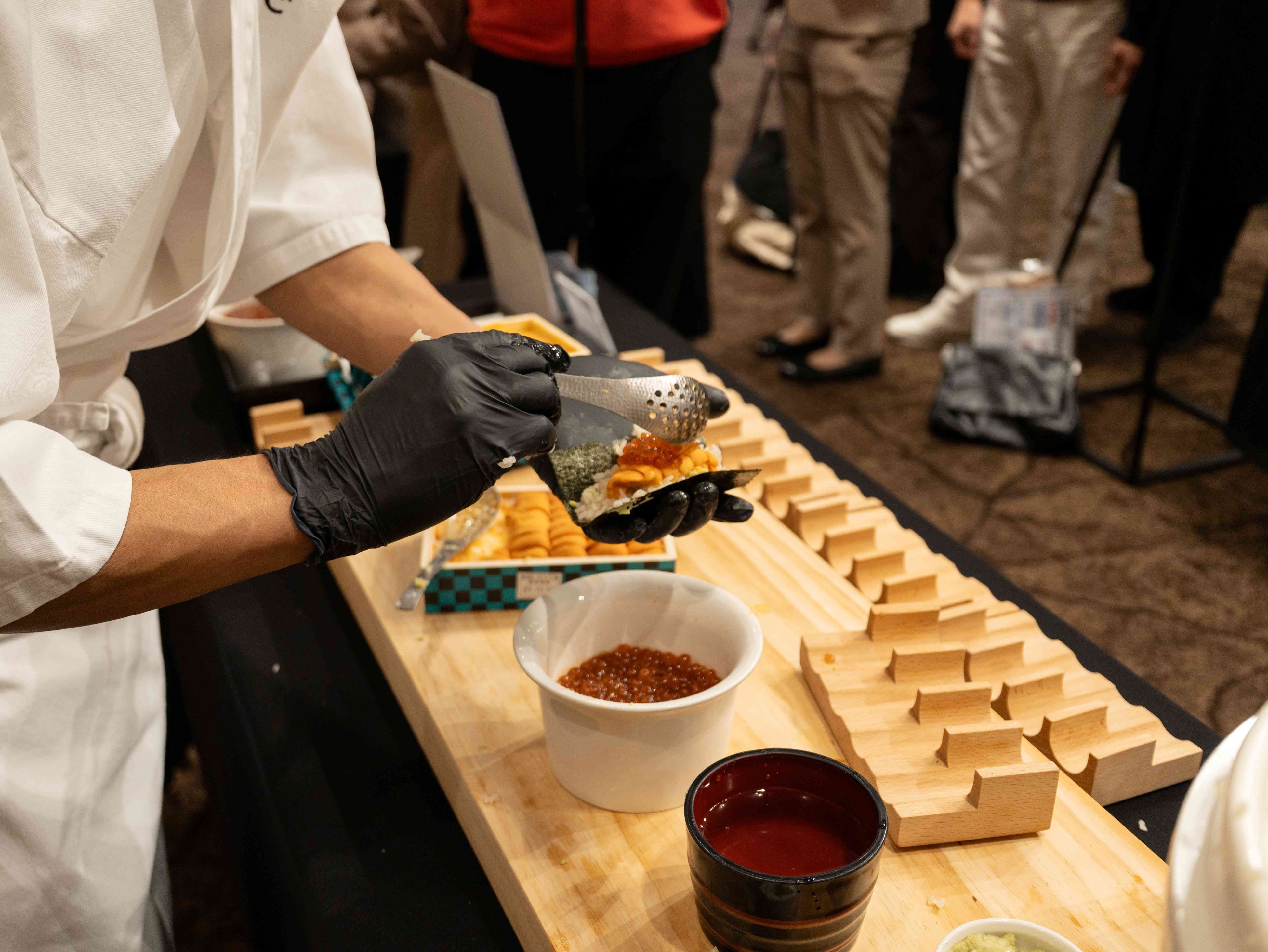 来場者は、縞鯵の刺身、鰤の煮物、帆立のカルパッチョ、雲丹とイクラの手巻き寿司、日本の納豆を使ったチョングッチャン、抹茶味噌ティラミスなど、シェフの技が光る料理を堪能。さらに、中村シェフによるライブパフォーマンスやフォトゾーン、日本の発酵文化の説明パネルなど多彩なコンテンツも用意され、「日本の発酵食品を使った料理をまた食べてみたい」といった声をもらいました。