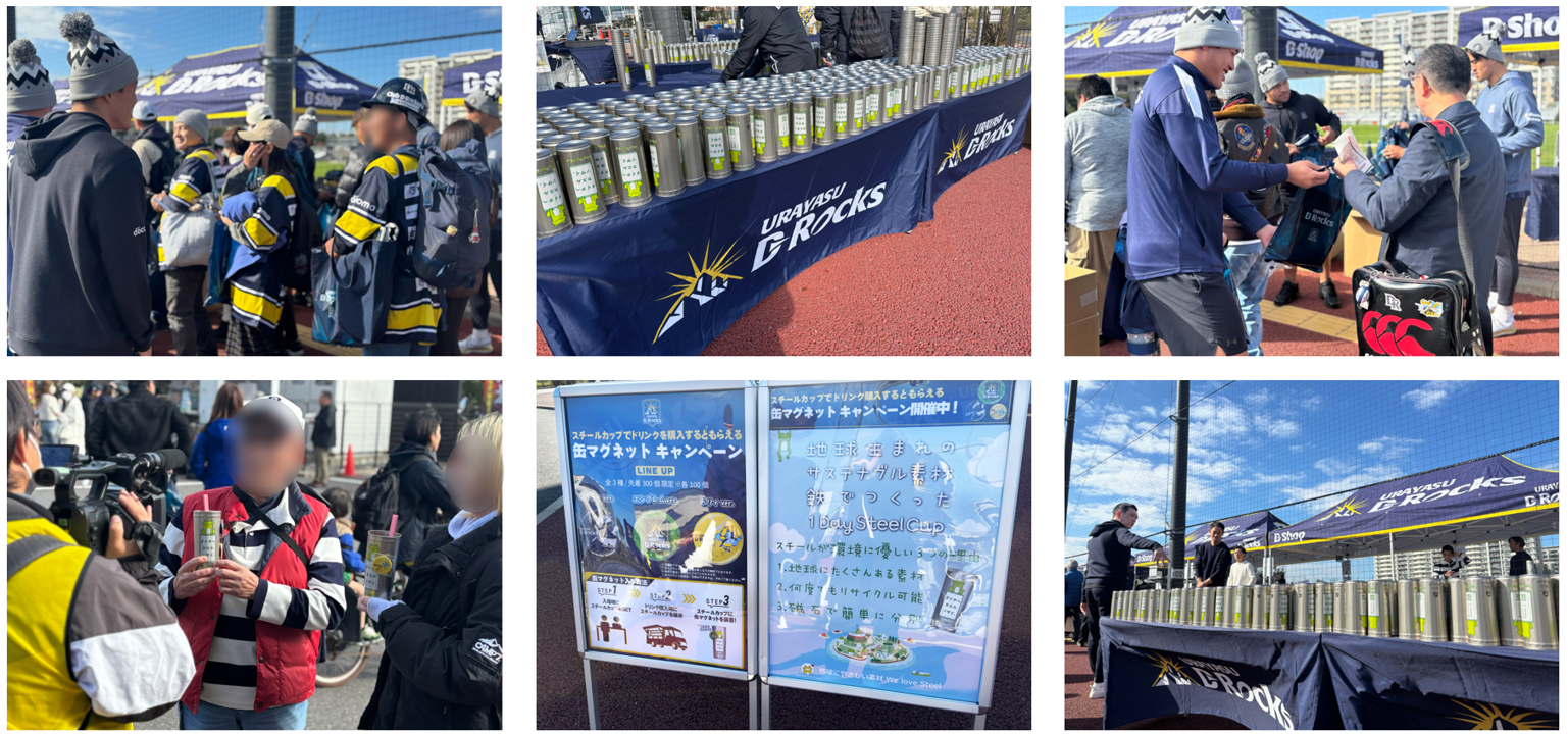 本取り組みは、リサイクル性に優れ、リユース可能なスチール製容器「1Day Steel Cup(ワンデー・スチール・カップ)」を多くの方に体験していただくことを目的に、千葉県浦安市のラグビーチーム、浦安D-Rocksのプレシーズンマッチで配布イベントを実施しました。