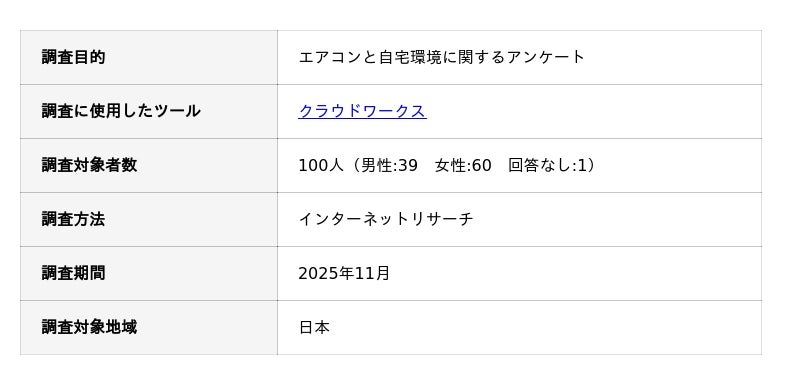 エアコンと自宅環境に関するアンケート調査の概要