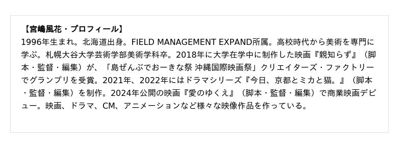 監督・宮嶋風花さんコメント