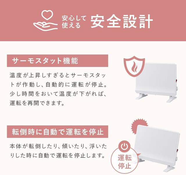 ダイヤル式で温度調節も簡単。転倒時に自動で電源オフになる安全機能付きで安心