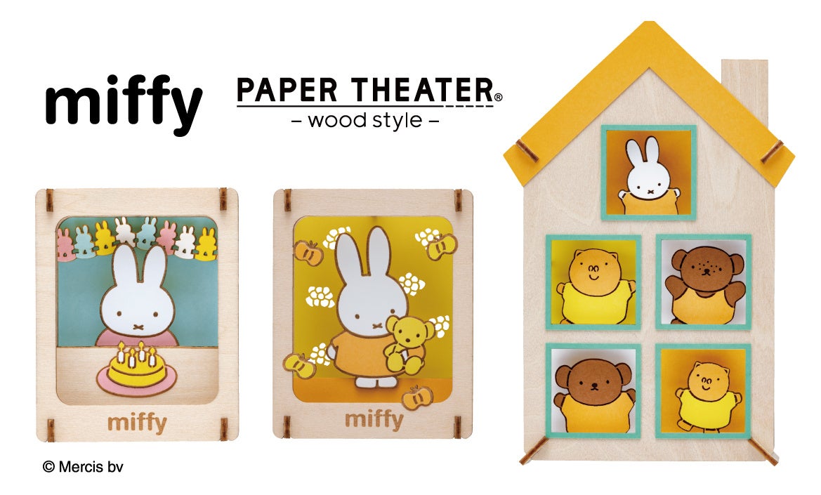「PAPER THEATER」シリーズに、誕生70周年を迎え、長年愛されているミッフィーが初登場!「PT-W22ミッフィーとケーキ」と「PT-W23ミッフィーとちょうちょ」では、お誕生日のお祝いをしている様子や、蝶々に囲まれたミッフィーがくまちゃんを抱っこするほのぼのした様子が楽しめます。「PT-WL29 ミッフィーとおうち」は、通常サイズの2倍の大きさで、表面はミッフィーと仲間たち、裏面はミッフィーが窓からのぞいており、両面楽しめるデザインです。木のぬくもりを感じるウッドスタイルでお部屋のインテリアとしても映え、ミッフィーファンにはたまらないアイテムです。ペーパーシアターが初めての方にもおすすめです。