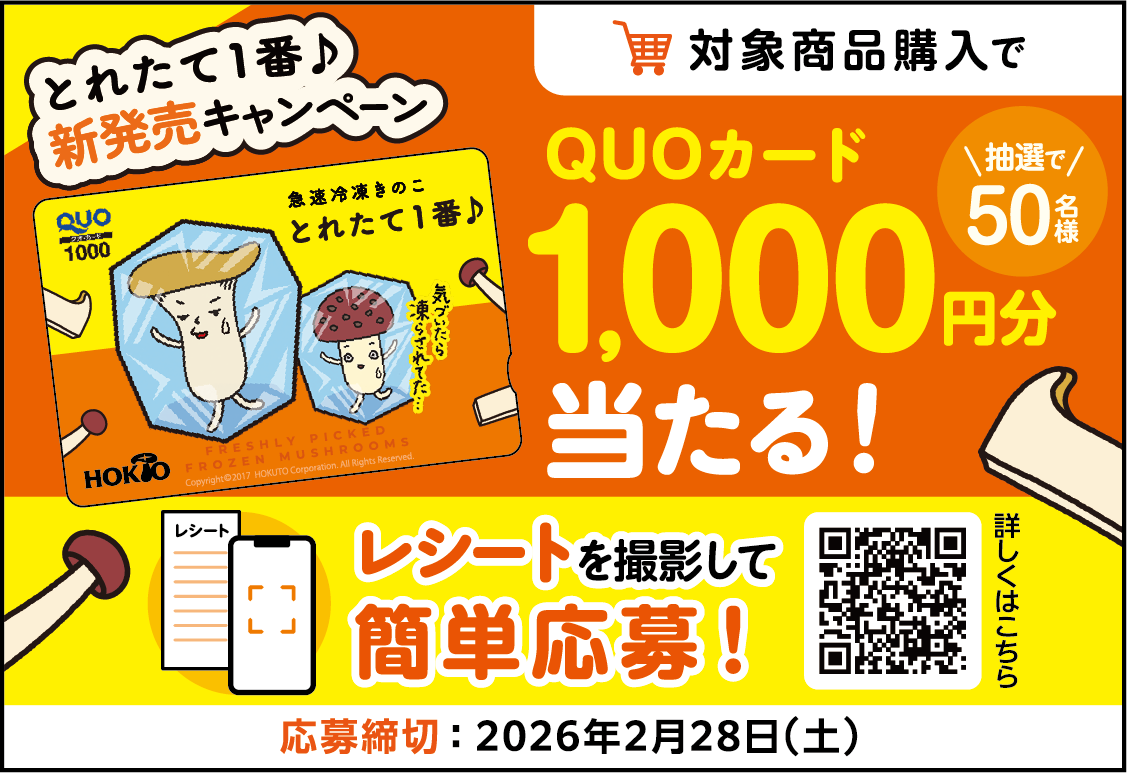 応募フォーム:https://www.hokto-kinoko.co.jp/frozen-mushrooms/