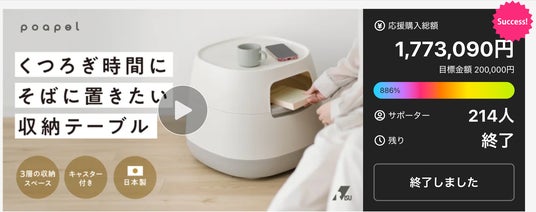 Makuakeにて公開から2時間半で100%を達成!終了後の達成率は886%に