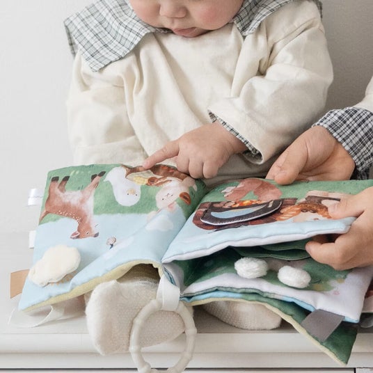 ページをめくるたびに「カシャカシャ」「ふわふわ」などの感触が楽しく、赤ちゃんの“もっと触りたい”を引き出します。