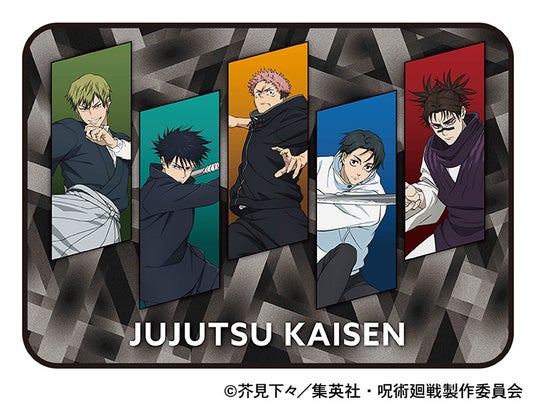 新商品には、戦闘態勢の虎杖、伏黒、乙骨、脹相、直哉の躍動感あふれる新規描き下ろしイラストを使用。「アクリルスタンド」や「キャラバッジコレクション」のほか、この季節にピッタリな「ブランケット」といった商品もラインナップしています。