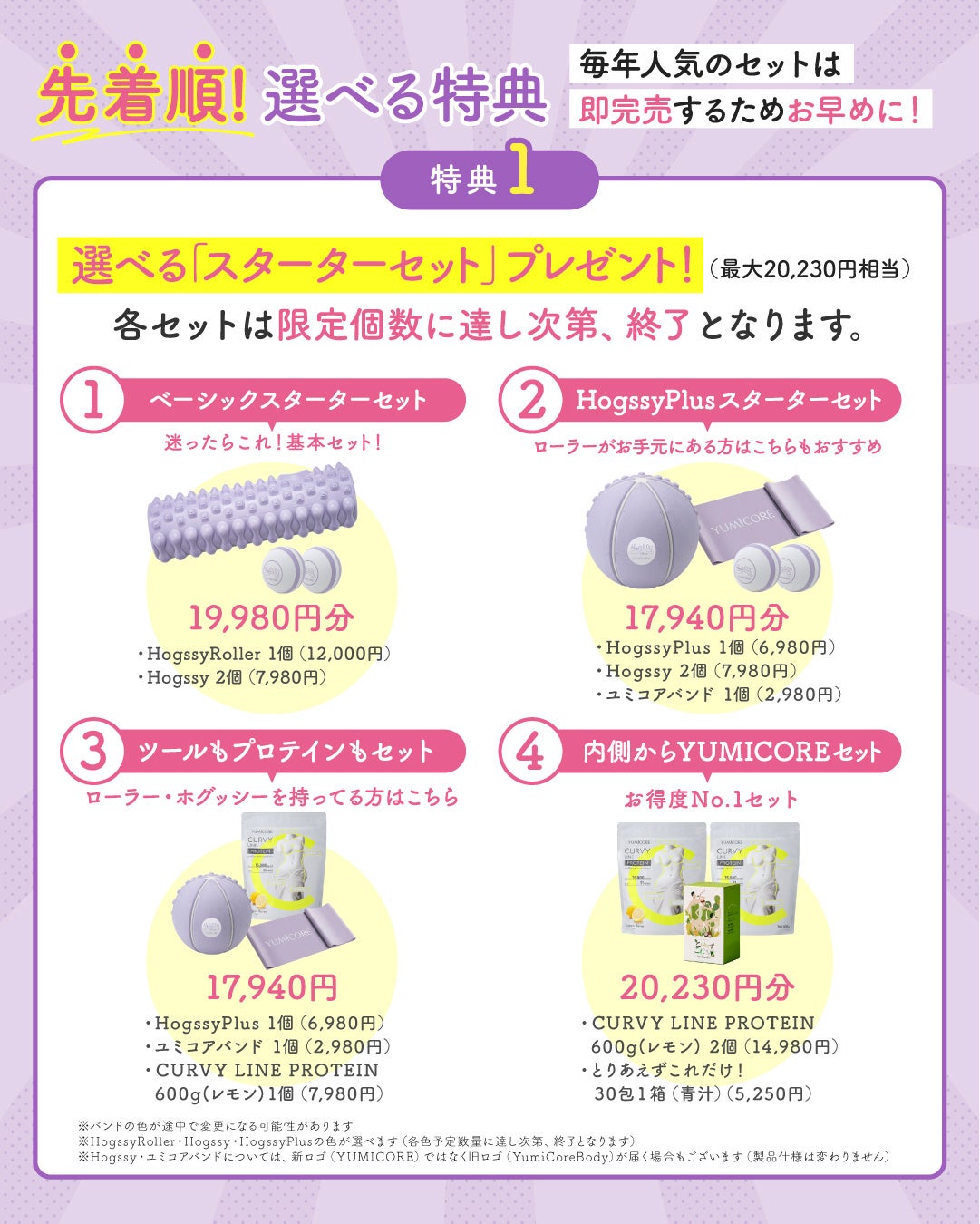 <特典1:選べるスターターセット(最大20,230円相当)>
