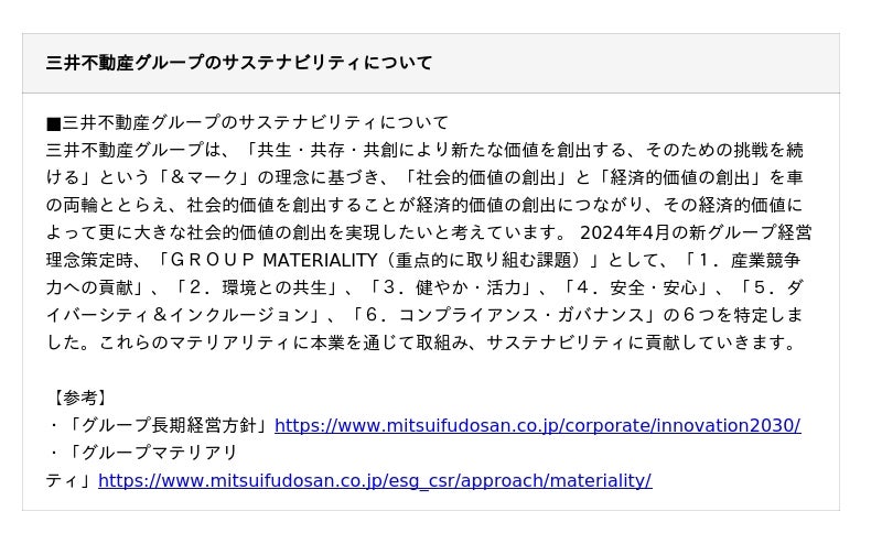 三井不動産は、社会・産業のテーマを取り上げ、企業・行政・専門家・来場者など多様なステークホルダーと共創する「~生きる」シリーズを通じ、社会や産業発展に関心の高い都市生活者と企業が直接的な接点を持つ場を提供してきました。今後もリアル会場ならではの体験と対話を通じ、産業のイノベーション創出に取り組んでいきます。