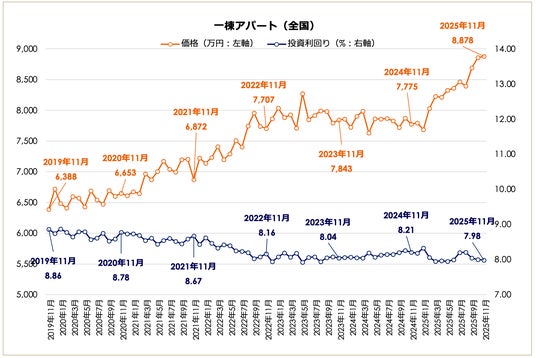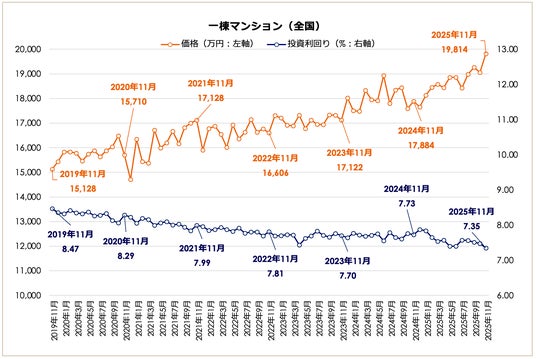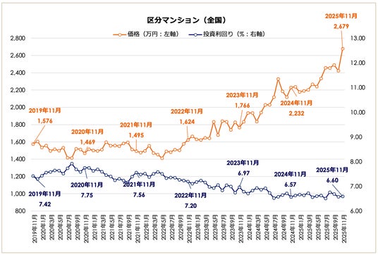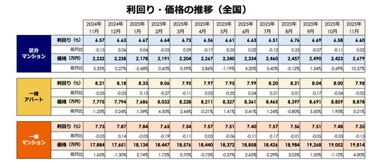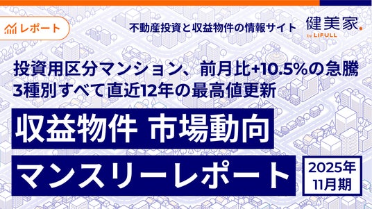 事業を通して社会課題解決に取り組む株式会社LIFULLのグループ会社であり、不動産投資と収益物件の情報サイト「健美家(以下、健美家)」および「LIFULL HOME'S 不動産投資」を運営する健美家株式会社(代表取締役社長:成瀬 亮輔)は、2025年11月版の「収益物件 市場動向マンスリーレポート」を公開しました。