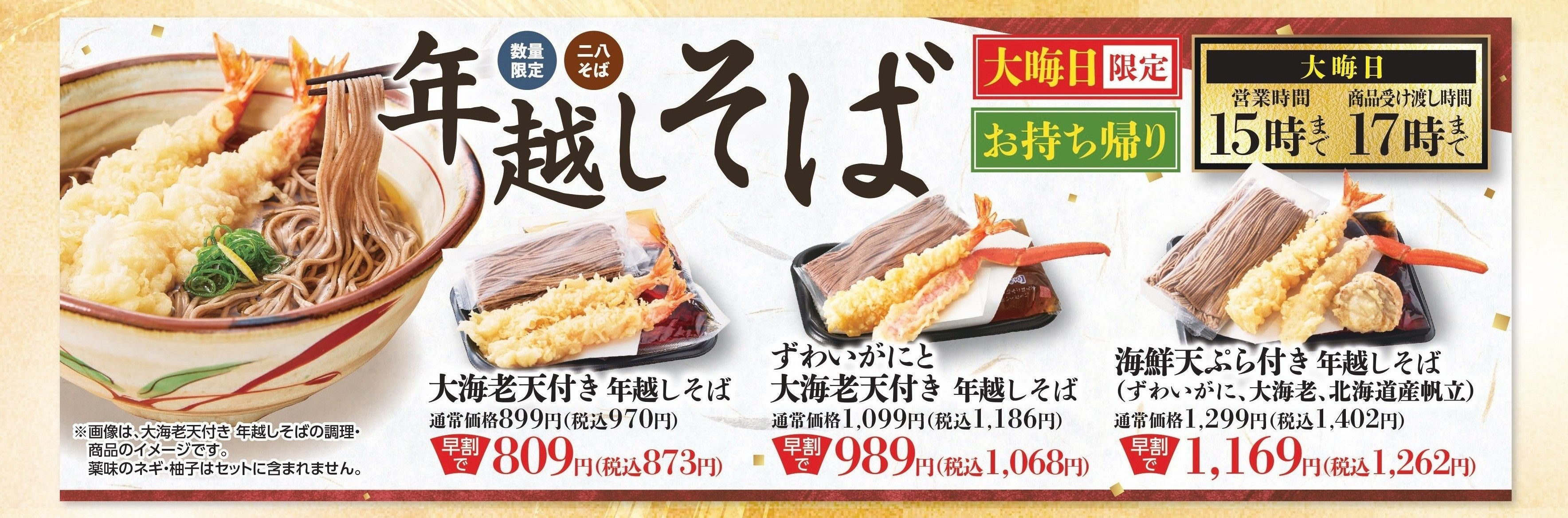 12月31日(水)大晦日に受渡し/販売する、お持ち帰り専用「年越しそば」を、数量限定で今年も販売します。