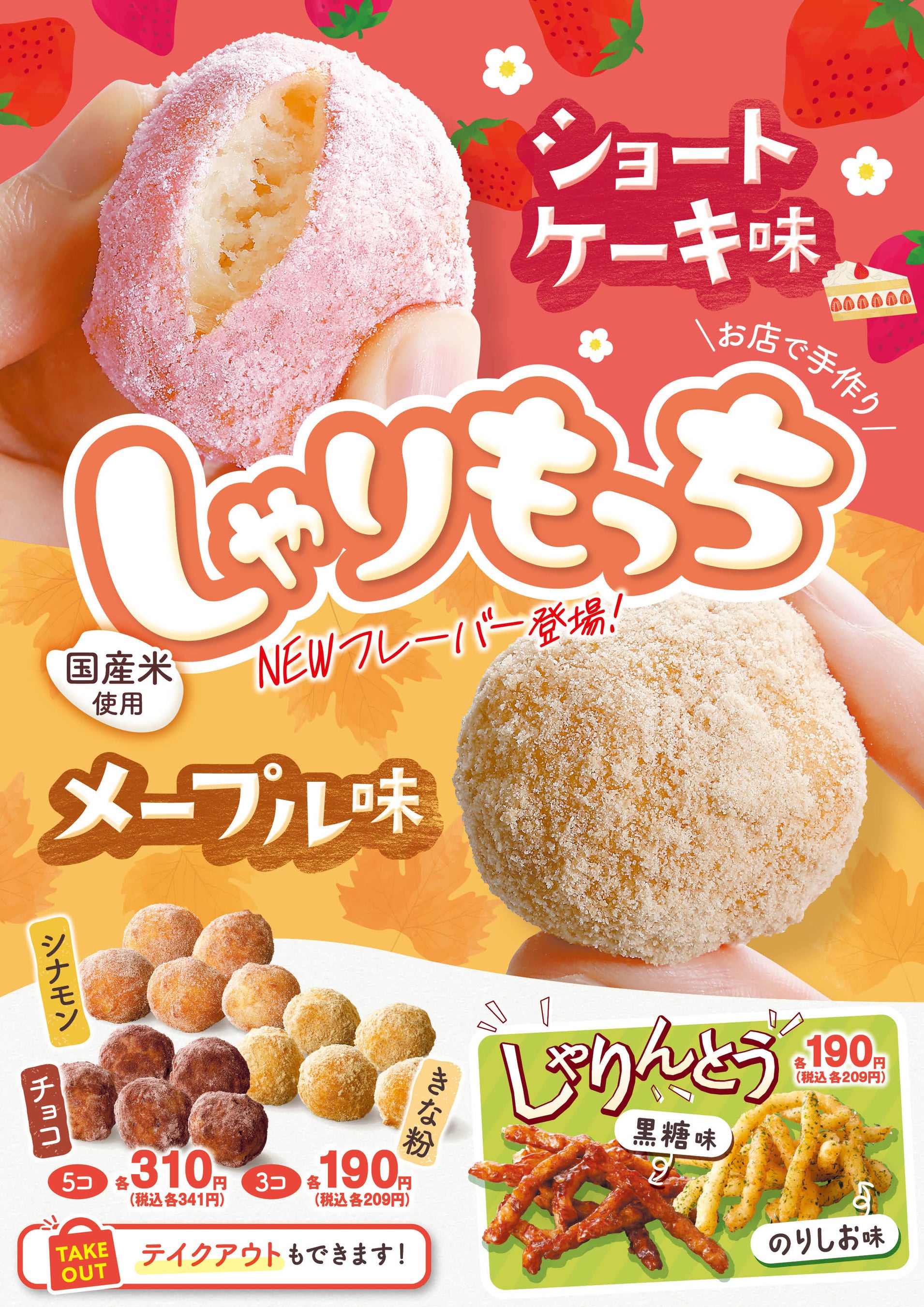 しゃりもっちは、チョコ・シナモン・きな粉の3種類も販売しています。